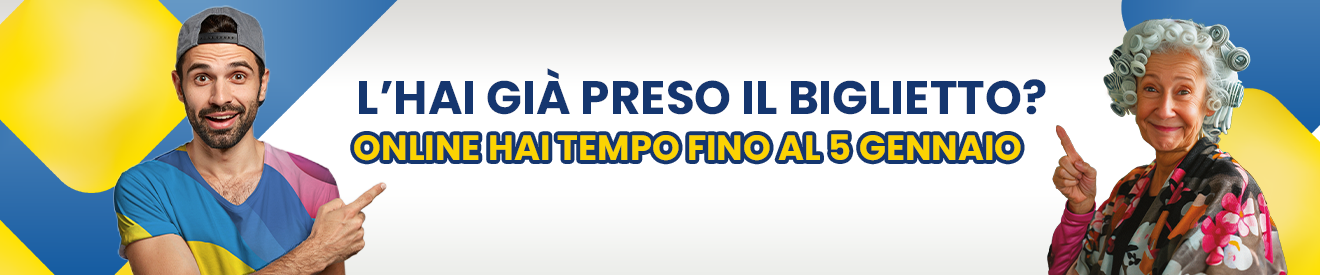 Chi ha registrato il biglietto entro il 14 dicembre 2025, potrà anche partecipare all’estrazione di uno dei premi giornalieri comunicati durante la trasmissione televisiva «Affari Tuoi» in onda fino al 26 dicembre: se il biglietto non è stato registrato, si partecipa in ogni caso all’estrazione di uno dei premi attribuiti durante l’estrazione finale del 6 Gennaio 2026.